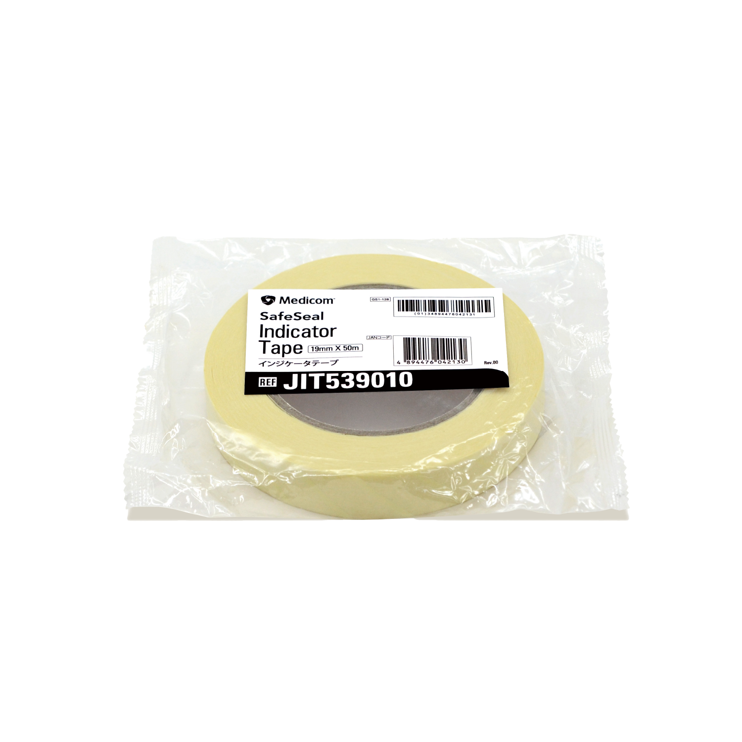 - 淡黄色のテープに濃茶色または黒色の斜線が表示されることで滅菌工程の通過を確認できます。